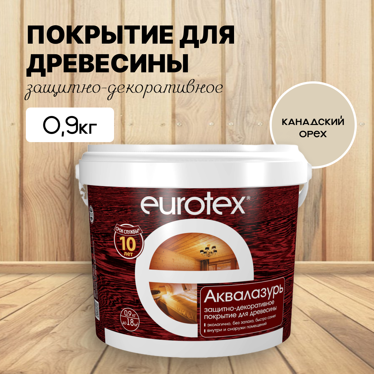 Аквалазурь EUROTEX защитно-декоративное покрытие для дерева, Канадский орех 0,9кг