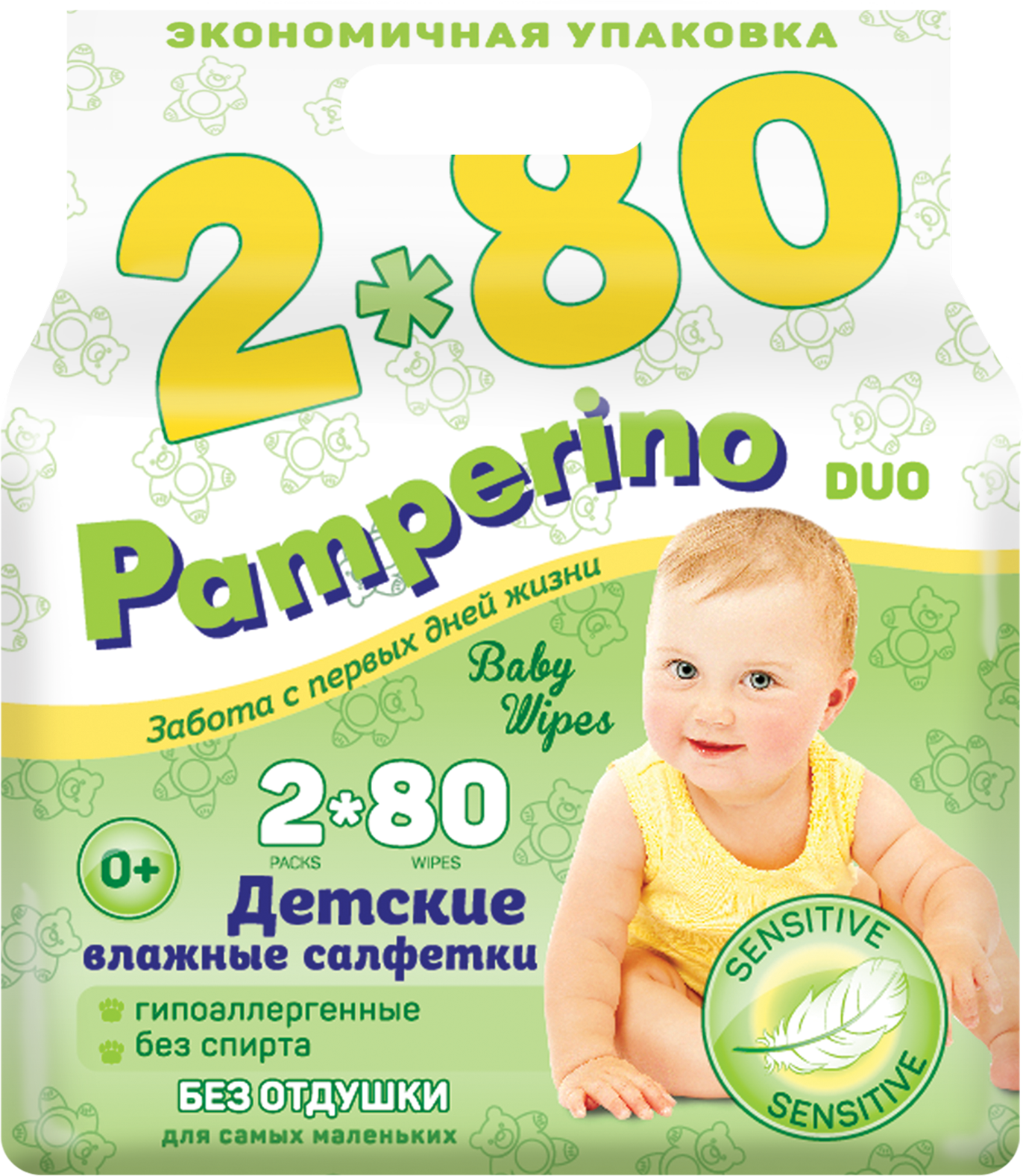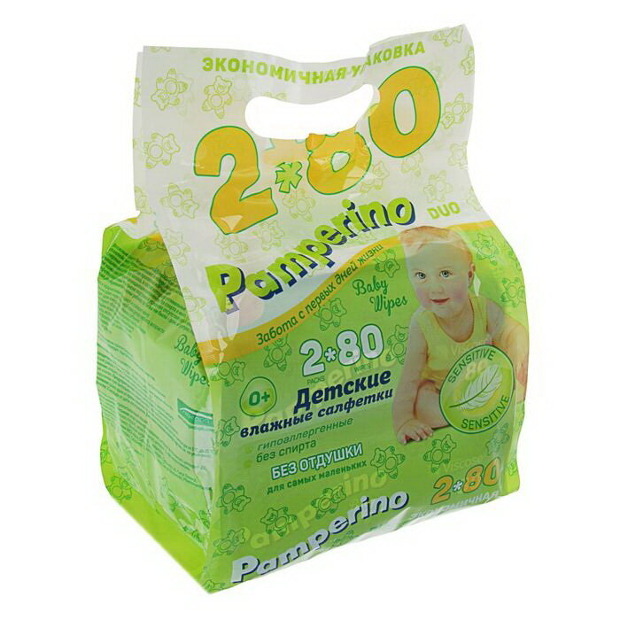 PAMPERINO Салфетки влажные , детские, без отдушки, 80 шт., 2 уп