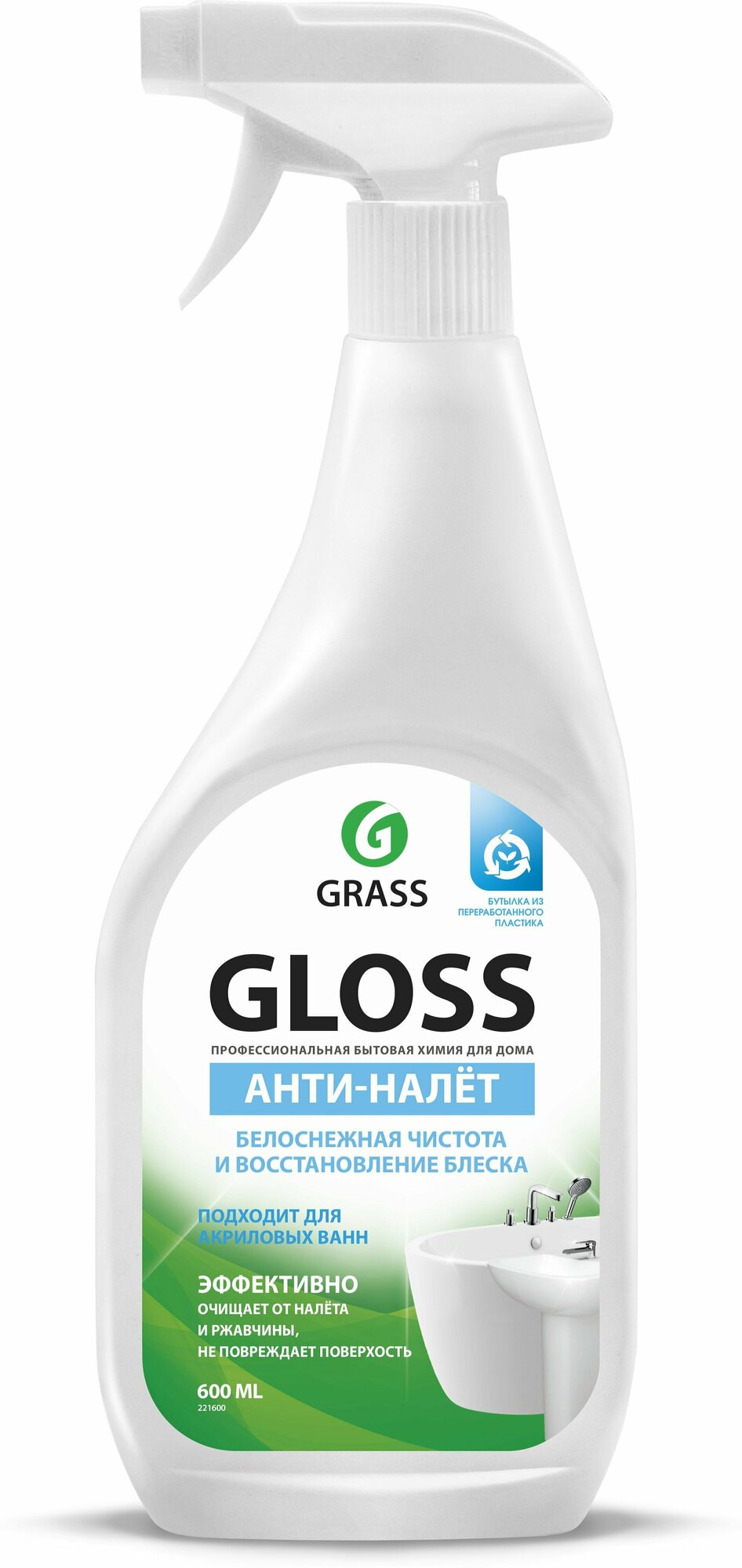 Чистящее средство Grass Gloss для акриловых поверхностей, 600мл антиналет для сантехники