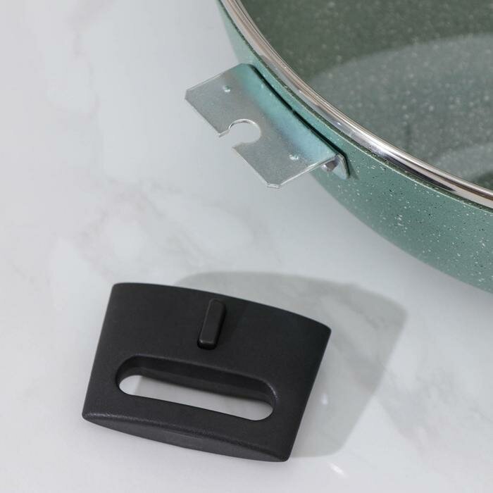 Сотейник 300/85мм со съемными ручкамистеклянной крышкойАП фисташковый мрамор смф308а (3) фисташковый .