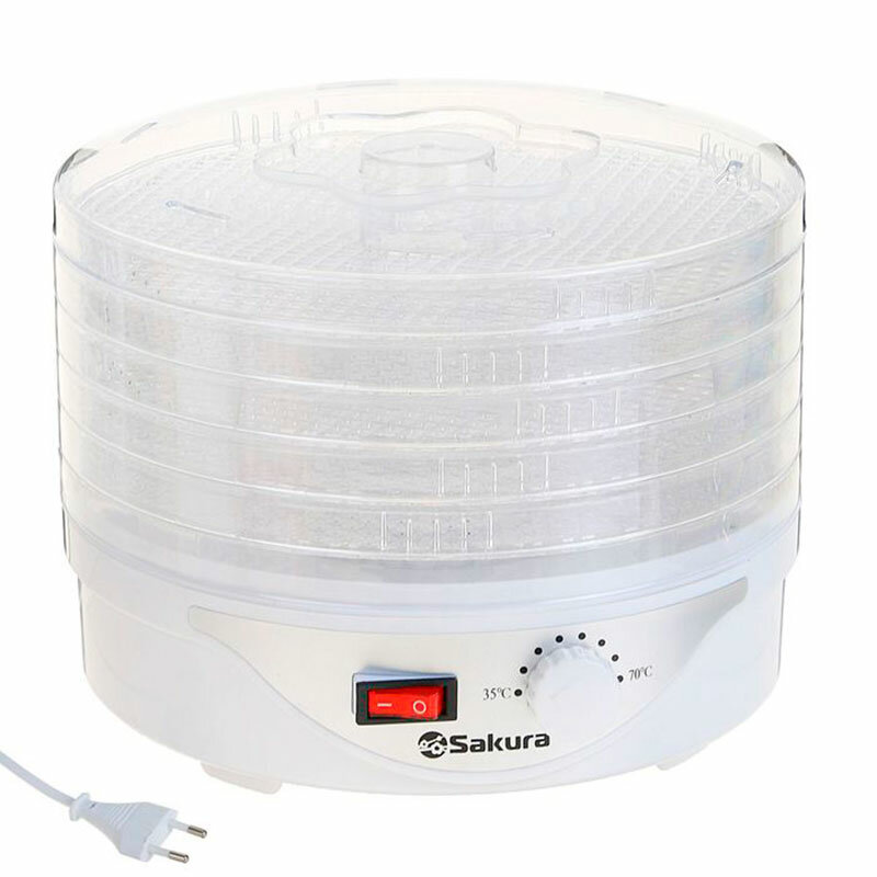 Сушилка для овощей и фруктов Sakura SA-7805, 250 Вт, 5 ярусов, белая