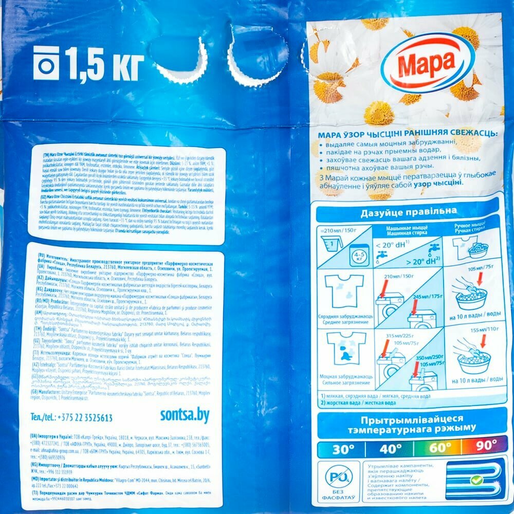 Купить Мара Стиральный порошок Мара Узор Чысціні "Утренняя свежесть" универсальный, автомат 1,5 кг
