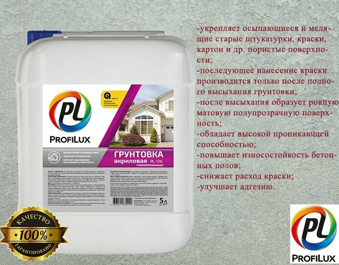 Profilux / Профилюкс Грунт PL-17A акриловый для наружных и внутренних работ 5л