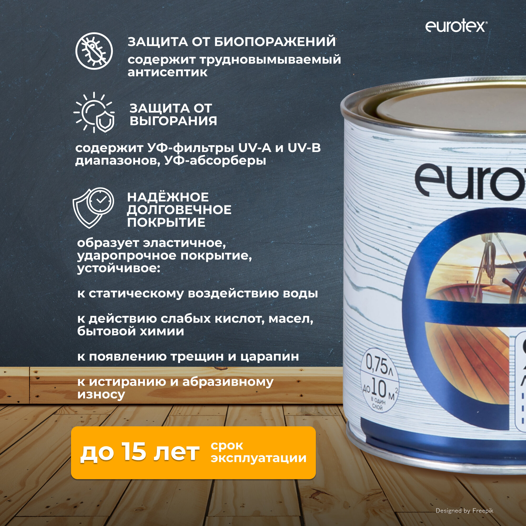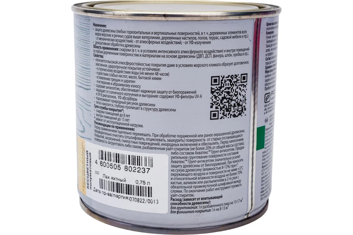 Лак Яхтный Eurotex 0.75л Алкидно-Уретановый Полуматовый для Внутренних и Наружных Работ / Евротекс