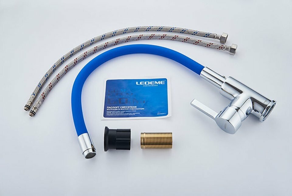 СохранитьСмеситель для кухни 35 карт. LEDEME с бок. ручкой, гибкий излив, синий интересное: