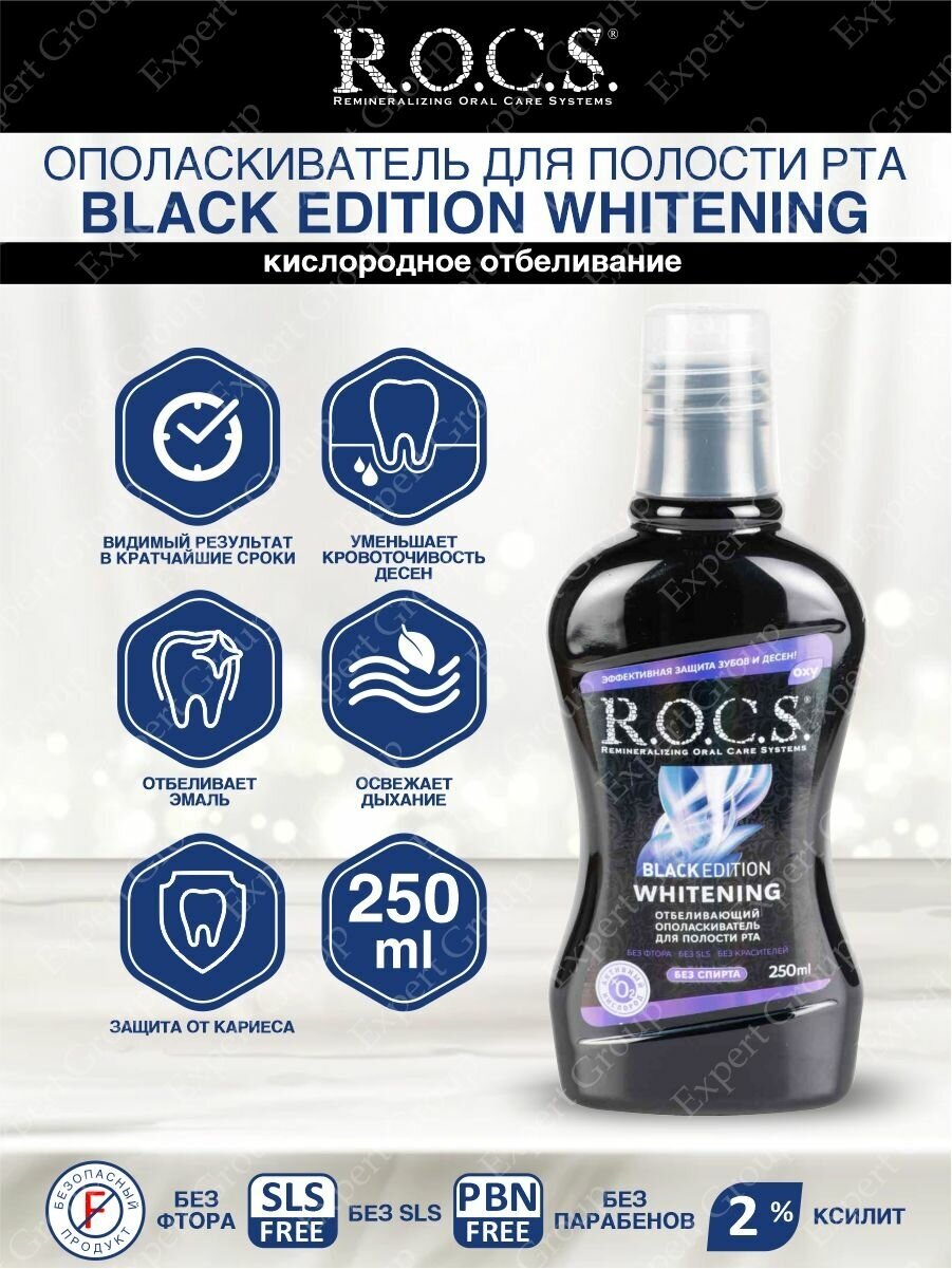 Ополаскиватель R.O.C.S. отбеливающий Black Edition, 250 мл
