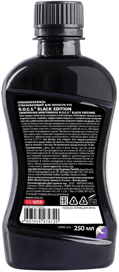 R.O.C.S Black Edition Ополаскиватель отбеливающий, 250 мл