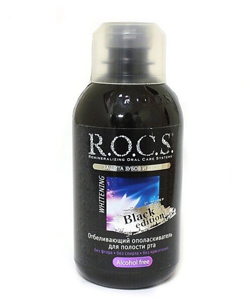 ROCS Ополаскиватель для полости рта отбеливающий без спирта и фтора Black Edition Whitening 250 мл