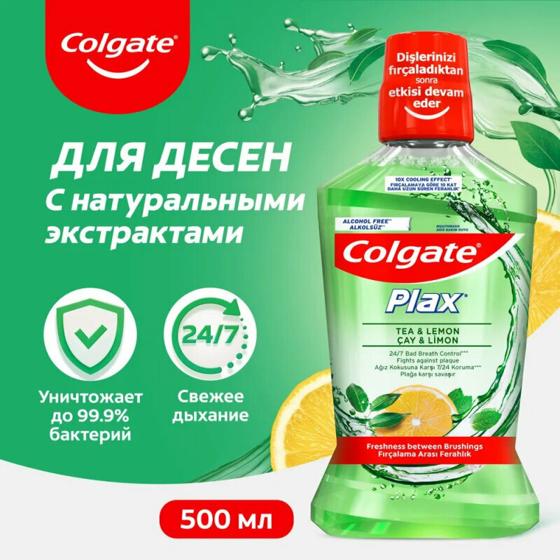 Colgate Ополаскиватель для полости рта Plax Свежесть чая, антибактериальный, 500 мл