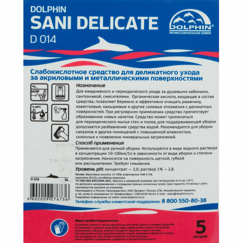 Купить Промышленная химия Dolphin Sani Delicate, 5л, средство для ухода за сантехникой (D014-5)