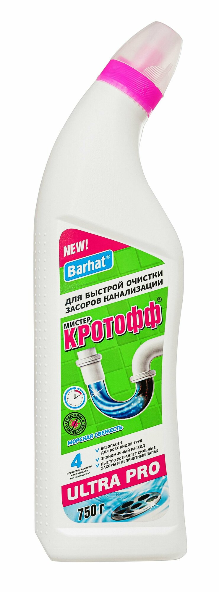 Средство для прочистки труб ULTRA BARHAT Мистер кротофф морск свеж 750гр Бархат 1561588 жидкость