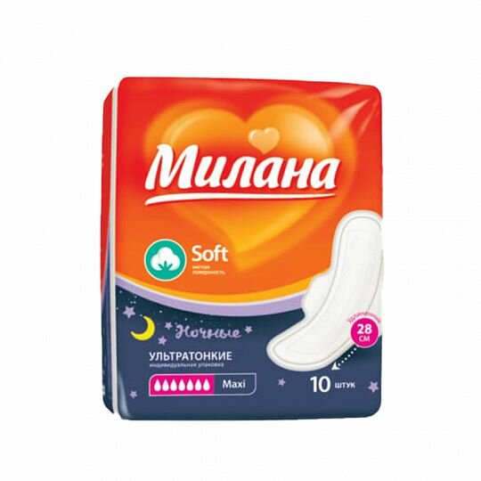 Прокладки «Милана» Ultra Макси Soft, 10 шт/уп ультратонкие 7 капель ночные
