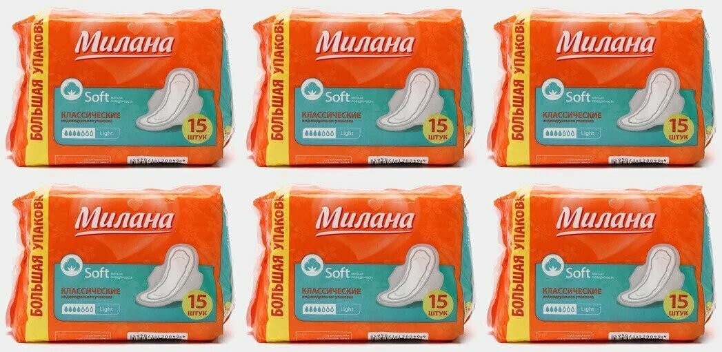 Прокладки гигиенические Милана Classic Normal soft Light 4 капли 6 упаковок по 15шт.
