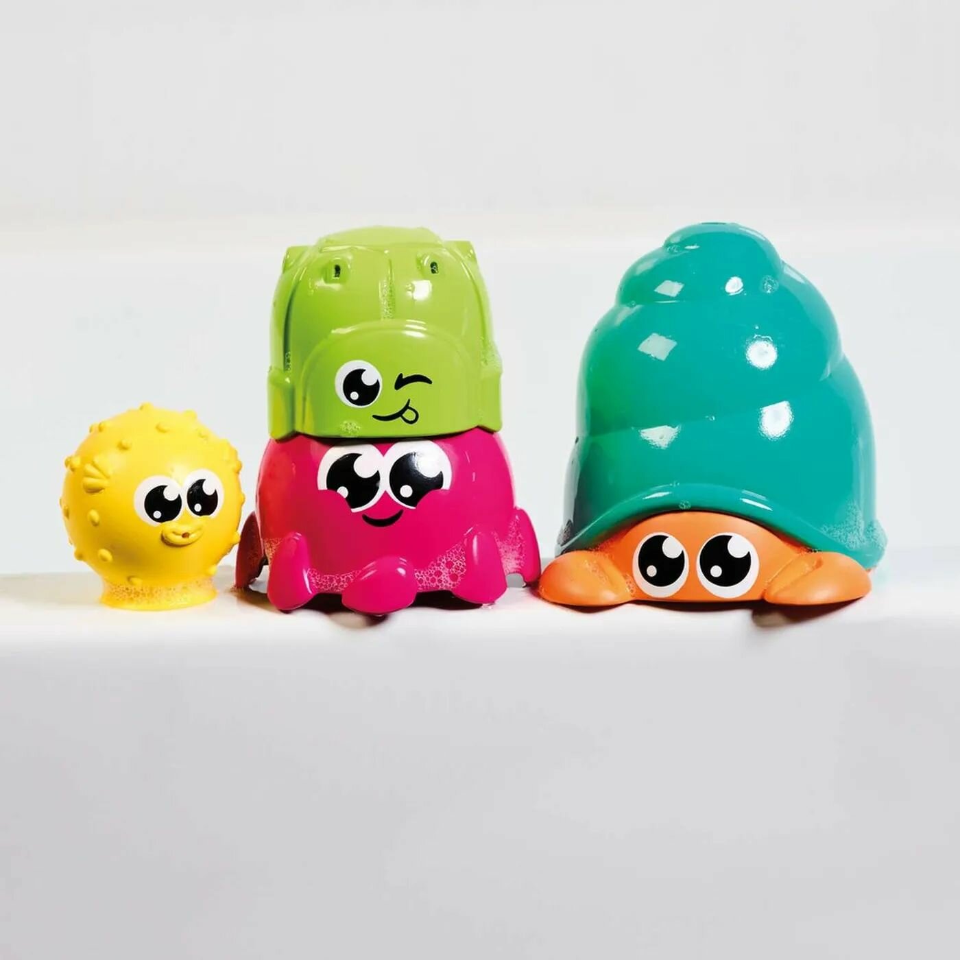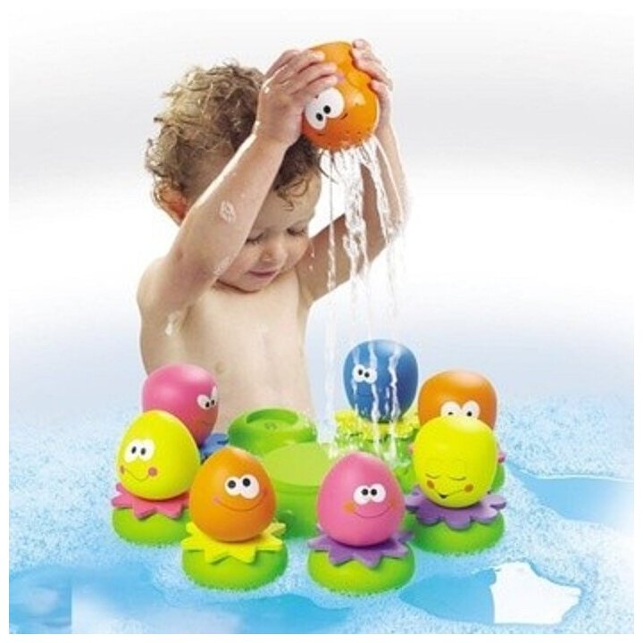 | Отзыв: | Плавающий остров с осьминожками - очень забавная игрушка для малышей от 1года. В маму-осьминожку можно наливать воду и устраивать душ. А малыши-осьминожки умеют прикрепляться к стенке в ванной, а также брызгаться, если их предварительно погрузить в воду, а затем нажать на них. |