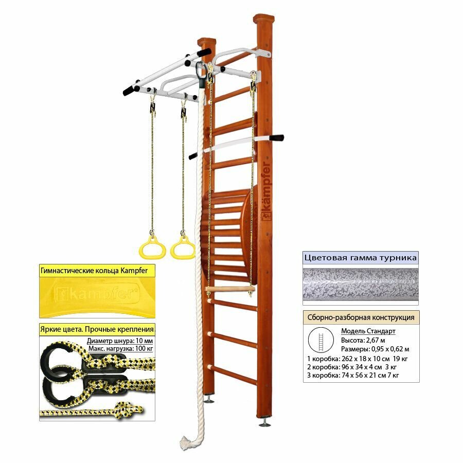 Шведская стенка Kampfer Helena Ceiling (№2 Ореховый Стандарт белый турник)