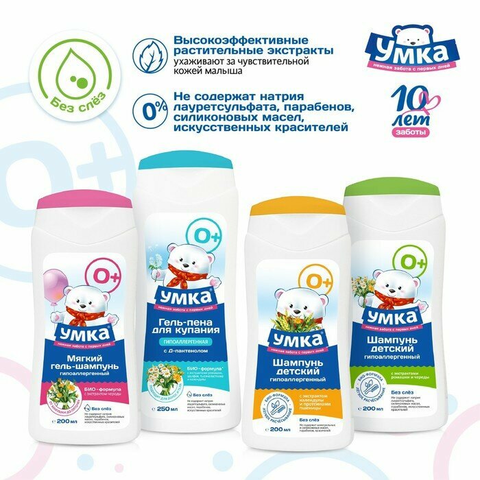 Умка Детский шампунь с экстрактом ромашки и череды, без SLS, SLЕS, силиконовых масел, парабенов, 200 мл