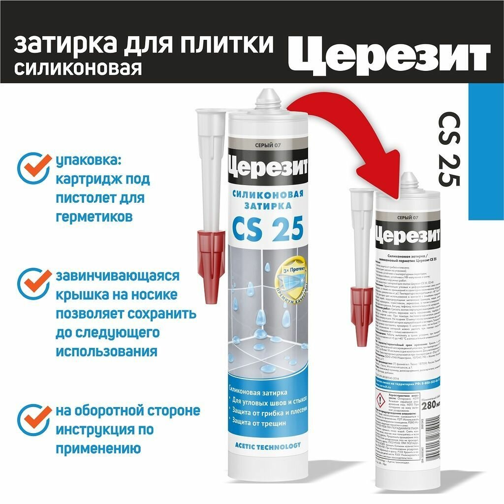 Силиконовая затирка-герметик Церезит CS 25 серый №07, 280 мл