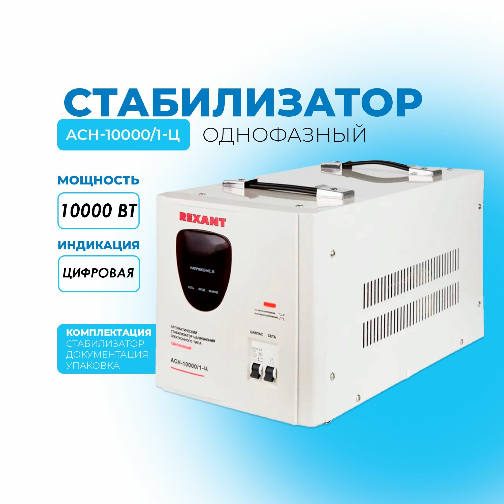 Стабилизатор 1ф 10000Вт цифровой переносной (от 140В до 260В) Rexant (1/1)