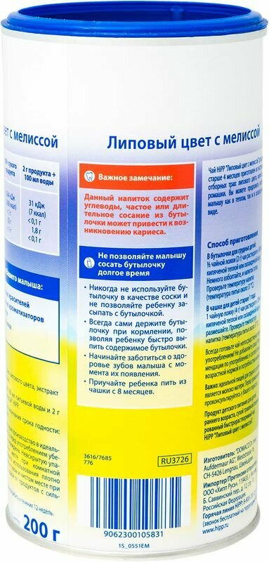 | Плюсы: | Чай HiPP Липовый цвет с мелиссой обожаю, вкусно |