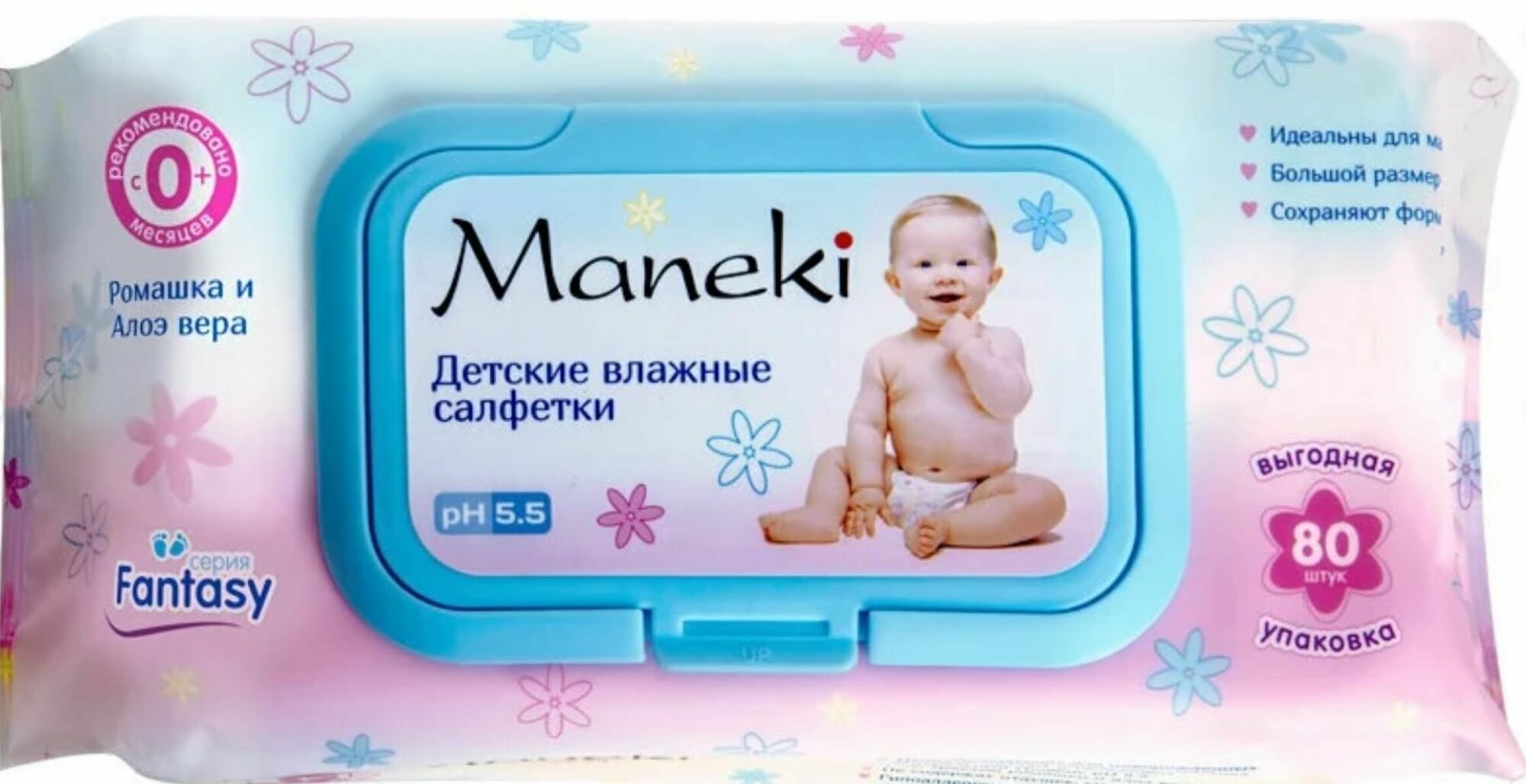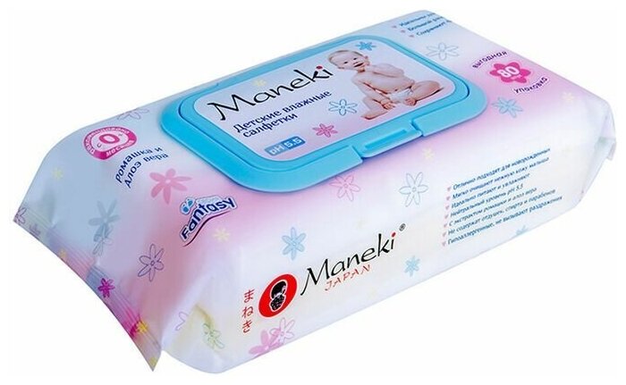 Maneki fantasy салфетки влажные, детские с экстрактом ромашки и алоэ вера, 80 шт.
