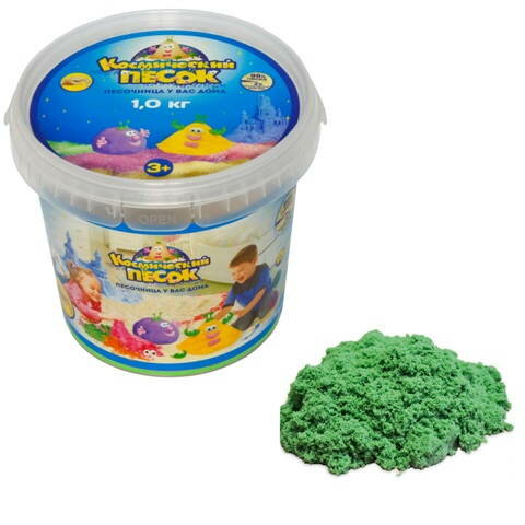 Кинетический песок Космический песок базовый, зеленый, 1 кг, пластиковый контейнер