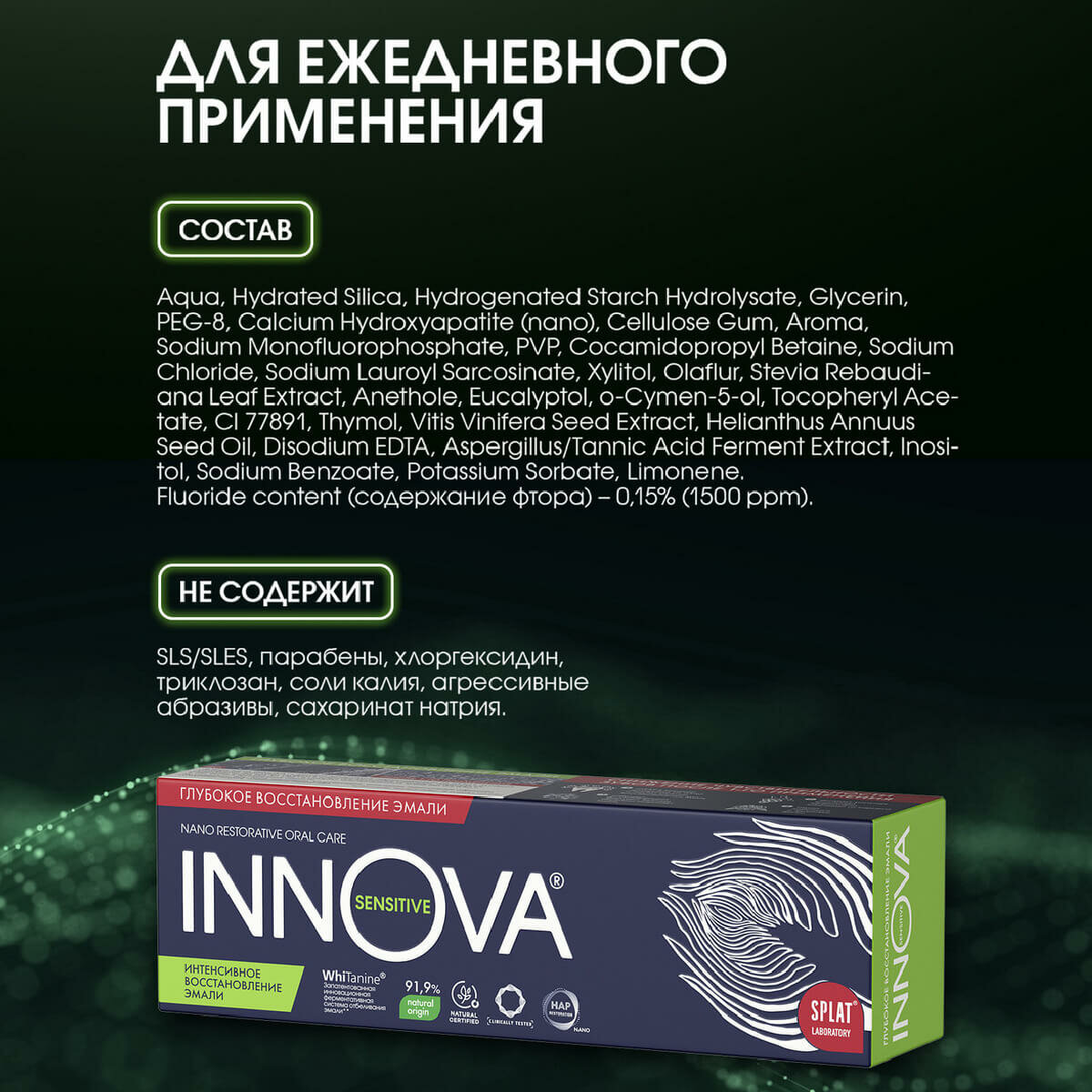 Зубная паста Innova Sensitive интенсивное восстановление эмали, для чувствительных зубов, 75 мл