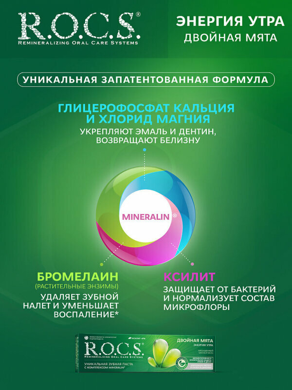 Зубная паста R.O.C.S. Энергия Утра Двойная Мята - диарси центр