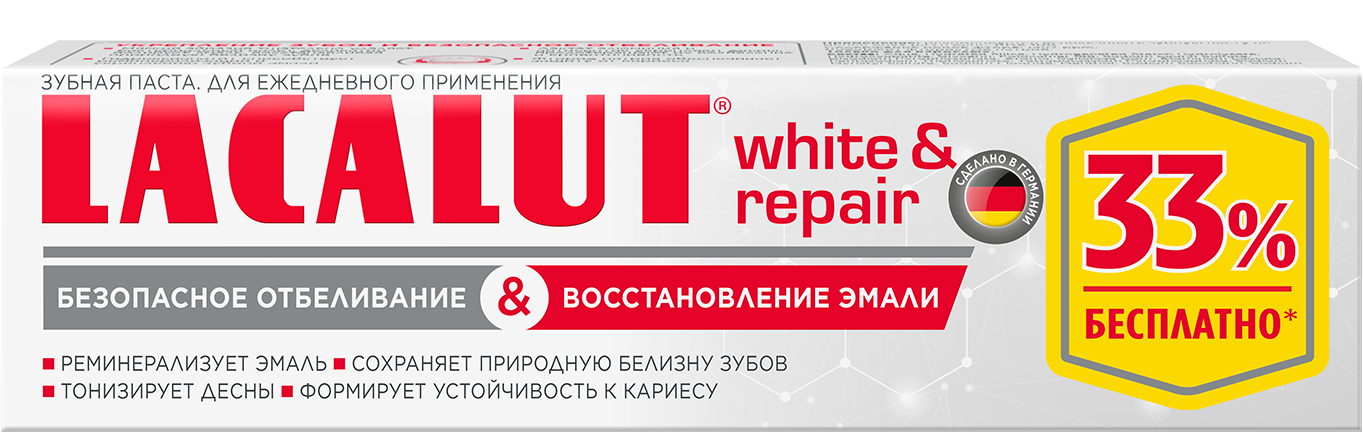 Зубная паста Lacalut White&Repair 100мл. +33% бесплатно