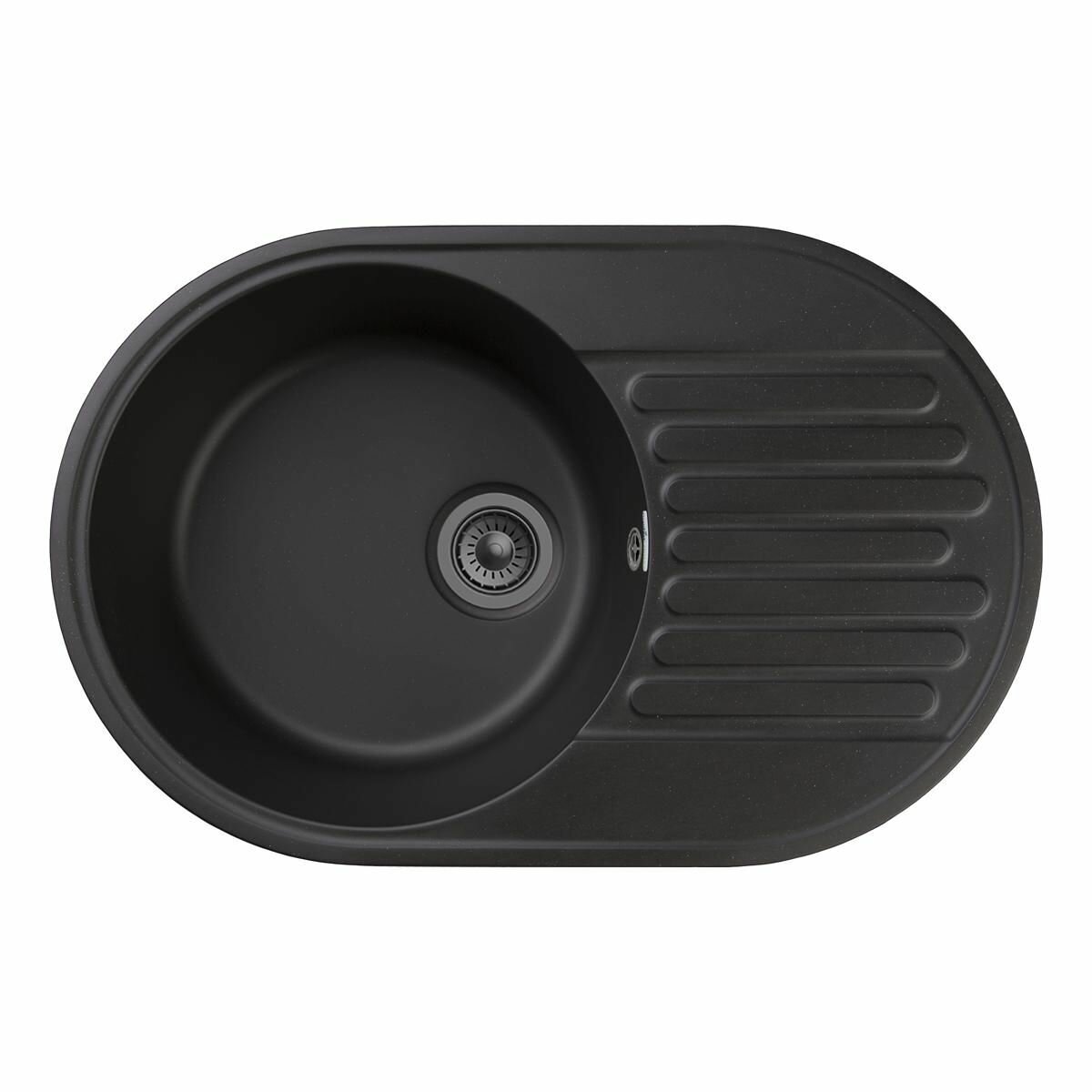 Кухонная кварцевая мойка GranFest QUARZ 18, овал, врезная, цвет черный/Раковина для кухни
