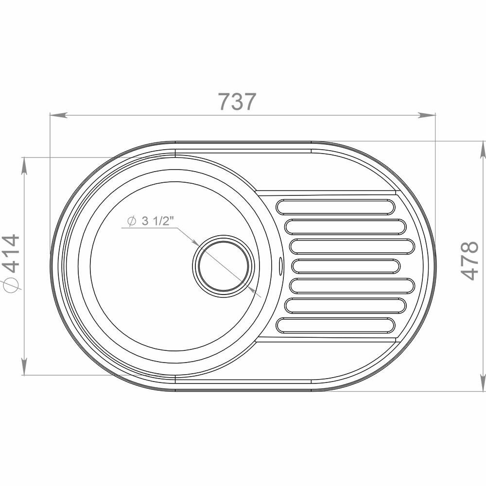 Мойка чаша+кр 740*480 (серый), GRANFEST, GF-Z18