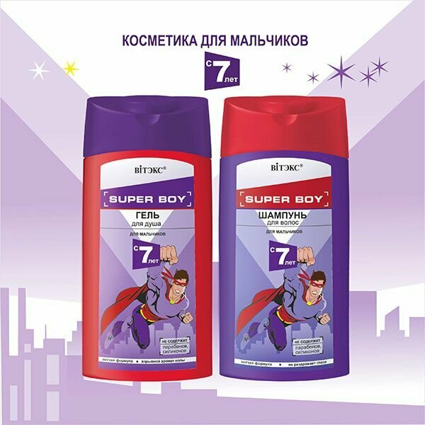 Гель для душа для мальчиков с 7 лет, 275 мл, SUPER BOY, Витэкс, 4810153023971