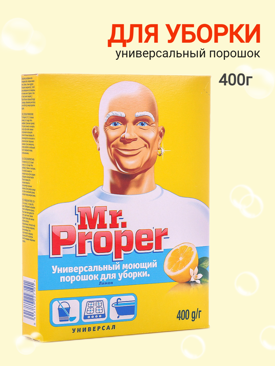 Ниже Вы можете прочитать отзывы на Mr. Proper Моющий порошок, универсал, 400 г, ознакомится с подробными характеристиками, посмотреть интересные обзоры и фотографии на Mr. Proper Моющий порошок, универсал, 400 г.
