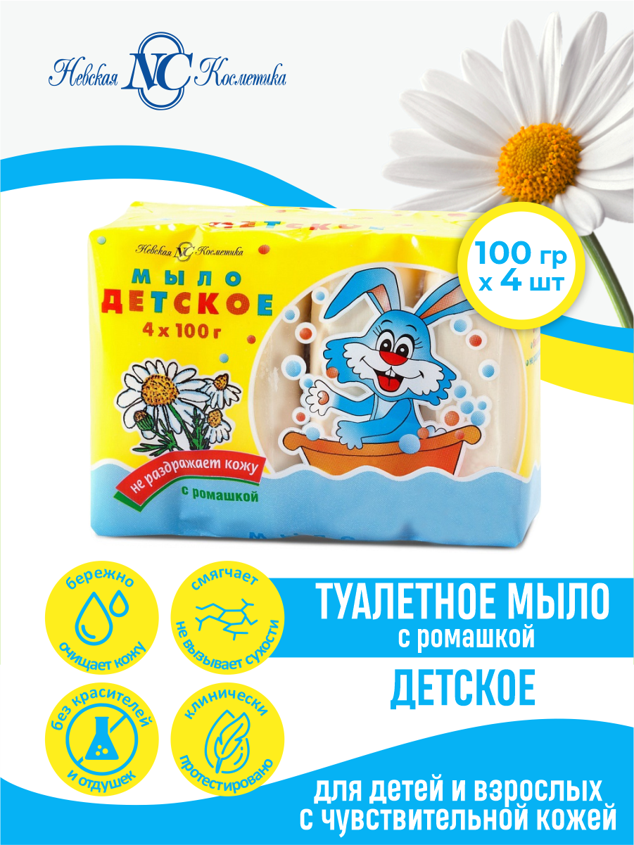 Туалетное мыло Невская Косметика Детское с ромашкой 100 гр. 4 шт/упак.
