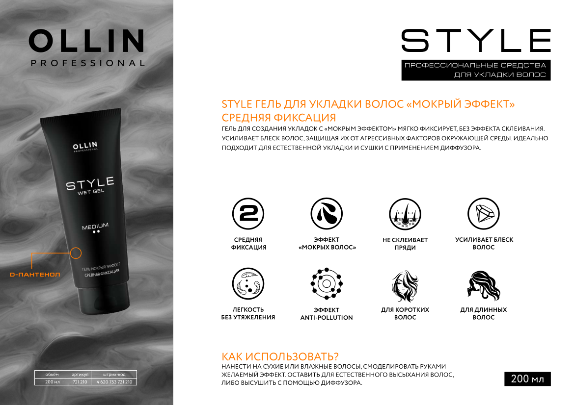 СохранитьOllin, Гель для укладки "мокрый эффект" средней фиксации STYLE, 200 мл интересное: