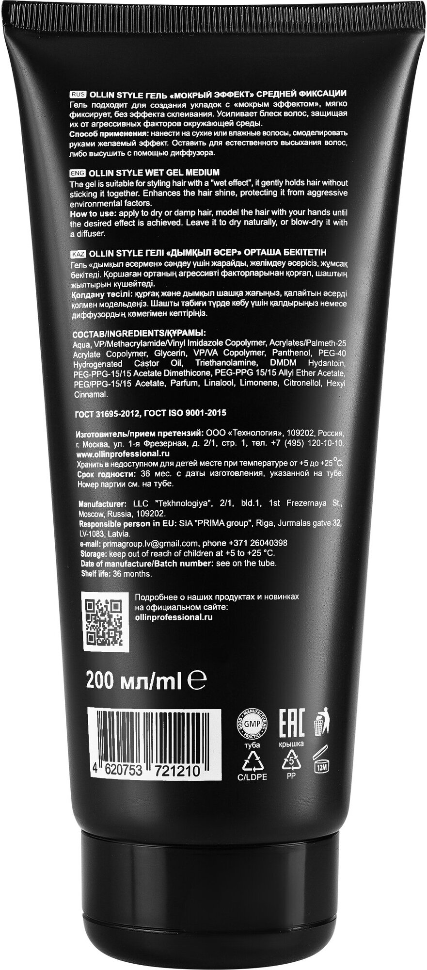 Ollin Style Wet Gel Medium - Оллин Стайл Гель "мокрый эффект" средней фиксации, 200 мл -