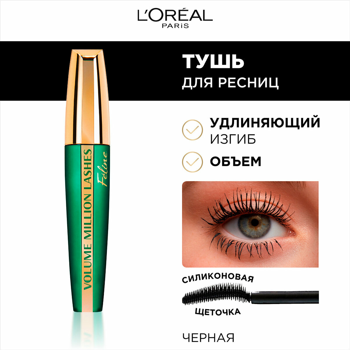 Купить L'OREAL Тушь для ресниц Volume Million Lashes Feline для объема и удлинения, 8,5 мл, Черная