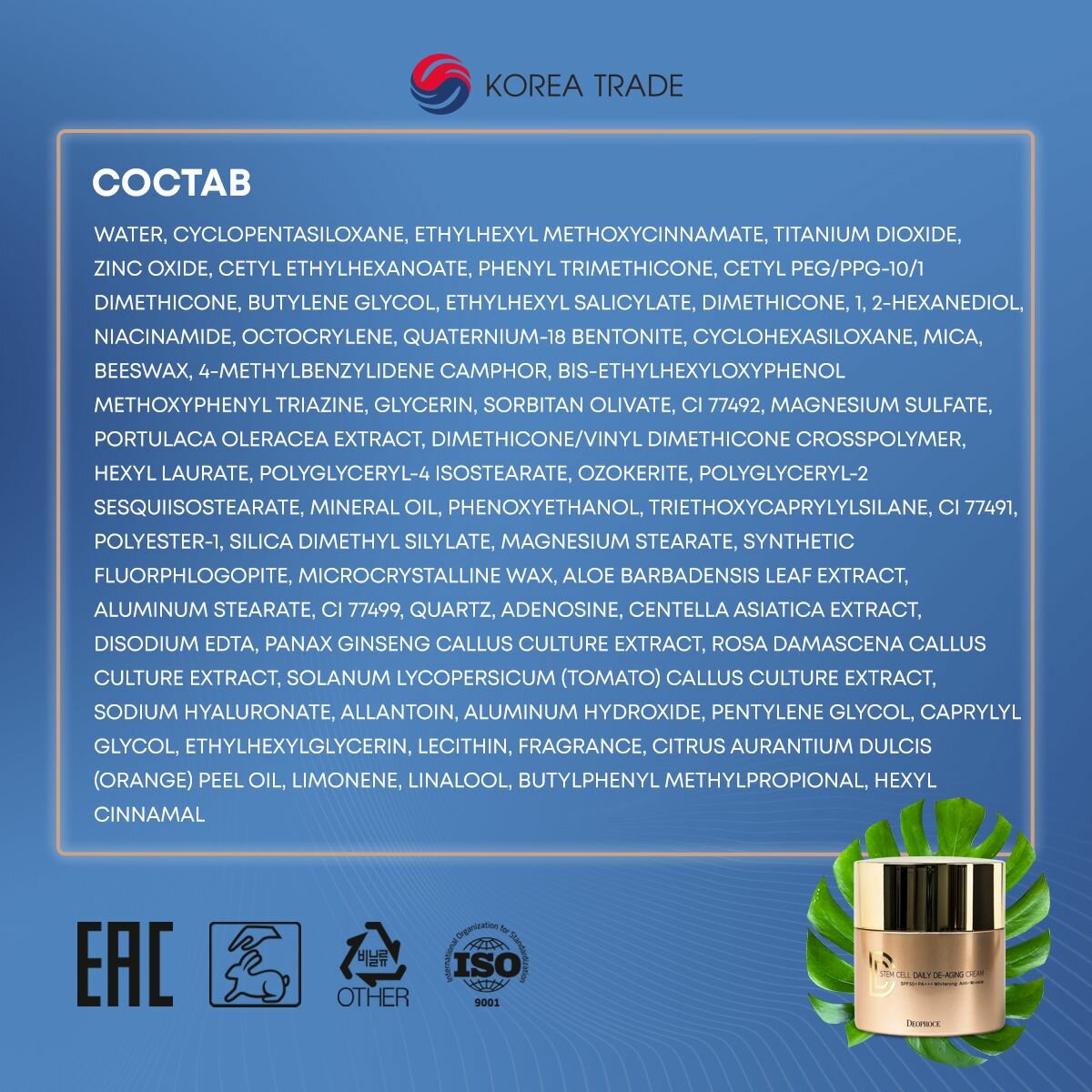СохранитьDEOPROCE STEM CELL DAILY DE-AGING CREAM #21 Антивозрастной солнцезащитный DD крем со стволовыми клетками 40г интересное: