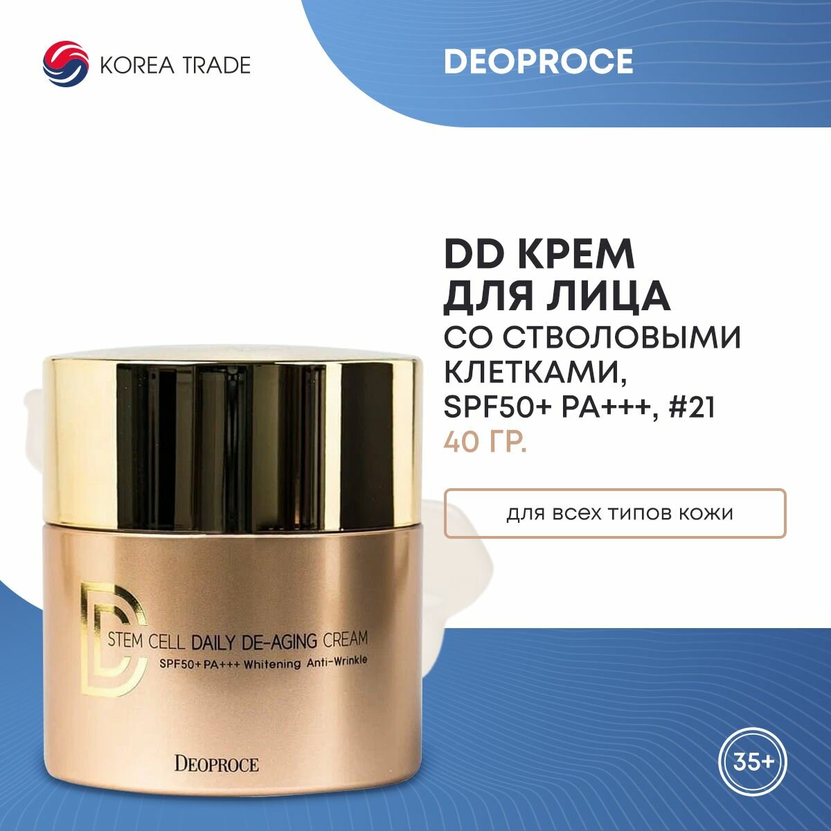 Купить DEOPROCE STEM CELL DAILY DE-AGING CREAM #21 Антивозрастной солнцезащитный DD крем со стволовыми клетками 40г