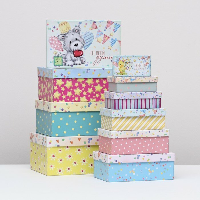 Набор коробок 10 в 1"Праздничное настроение", 30 х 19 х 11,5 - 12 х 6,5 х 4 см 10144728 .