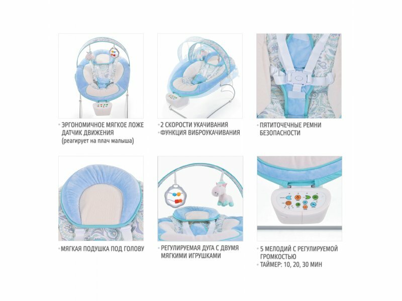 | Отзыв: | Купили себе этот шезлонг относительно недавно и пока только радует. Скорей это можно назвать электрокачелью, так как просто нажав кнопку он в нее и превращается. Выглядит мило (можно выбрать цвет), видно, что о безопасности и комфорте ребенка хорошо подумали: есть мягкая подушка, ремень безопасности, игрушки и много полезных функций. В общем, ребенку нравится. |
