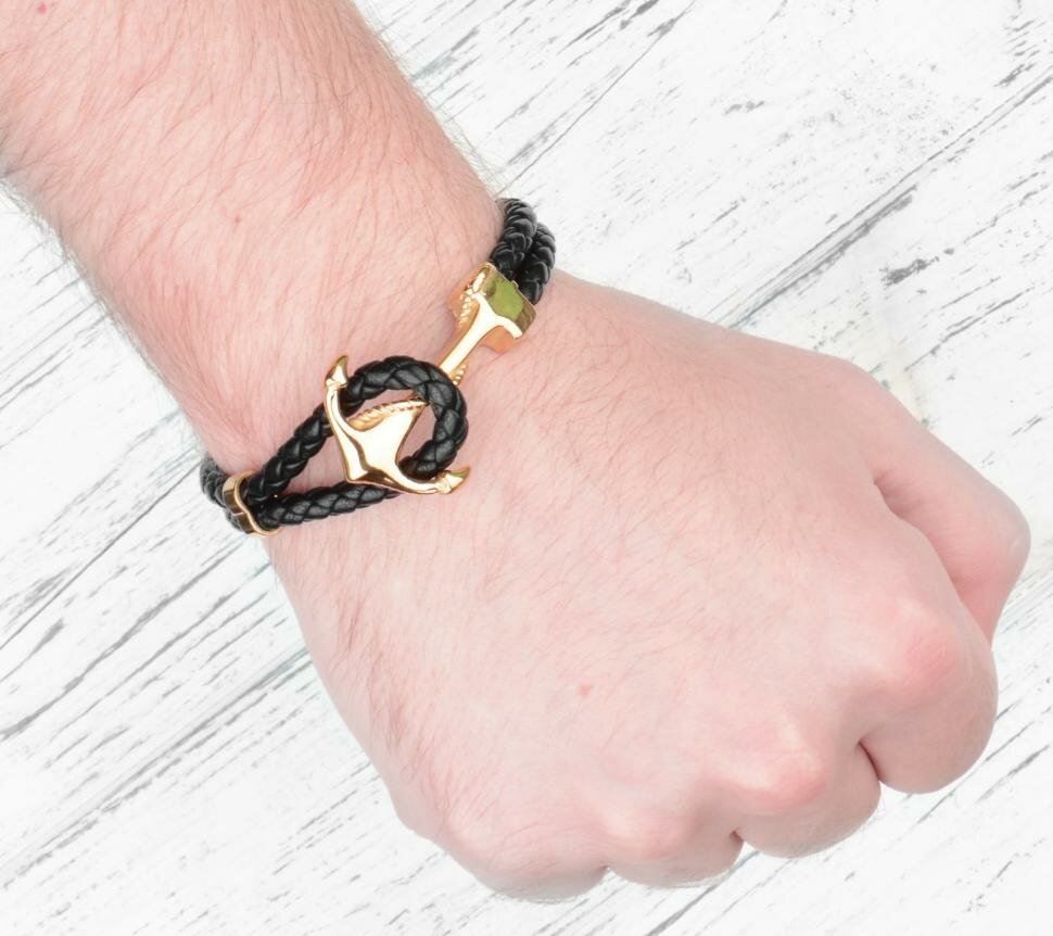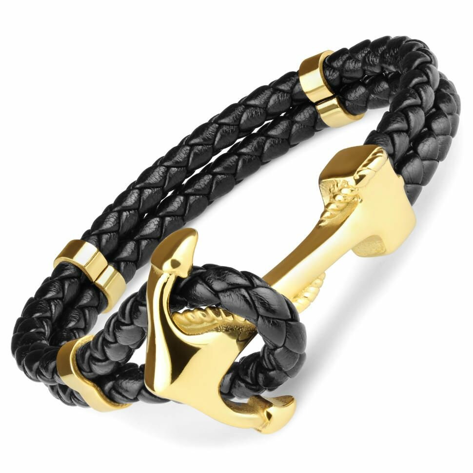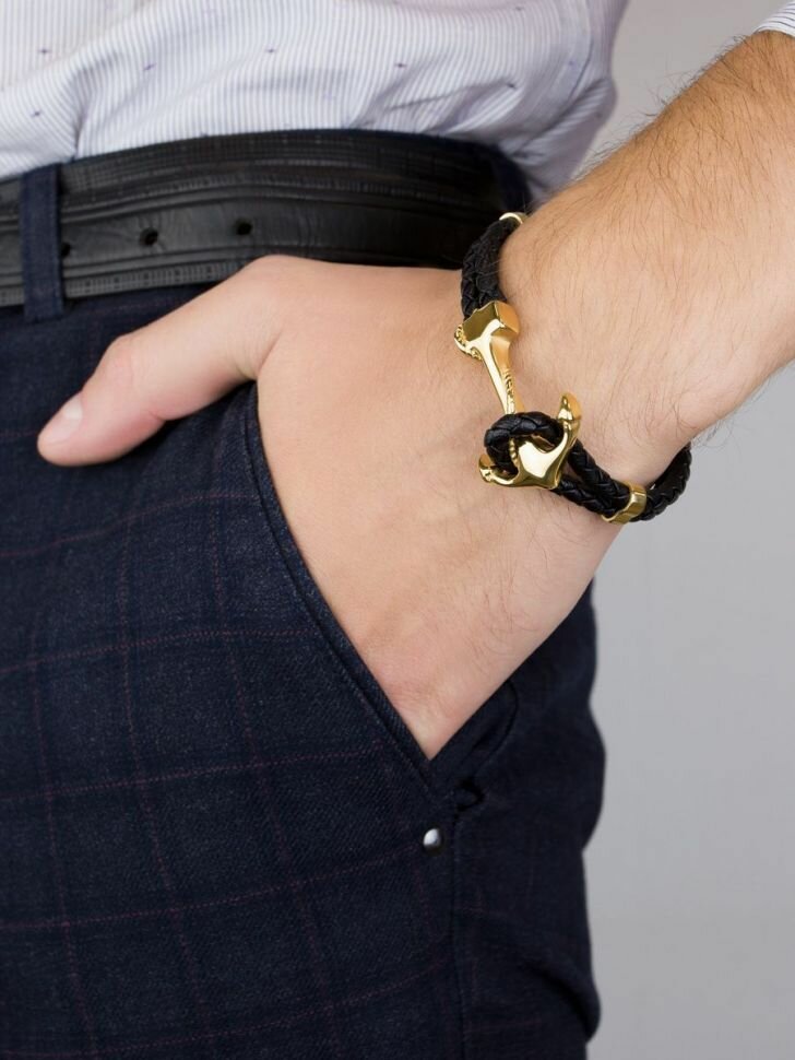 Кожаный браслет мужской Everiot SP-MJ-14014 с золотистым якорем интересное: