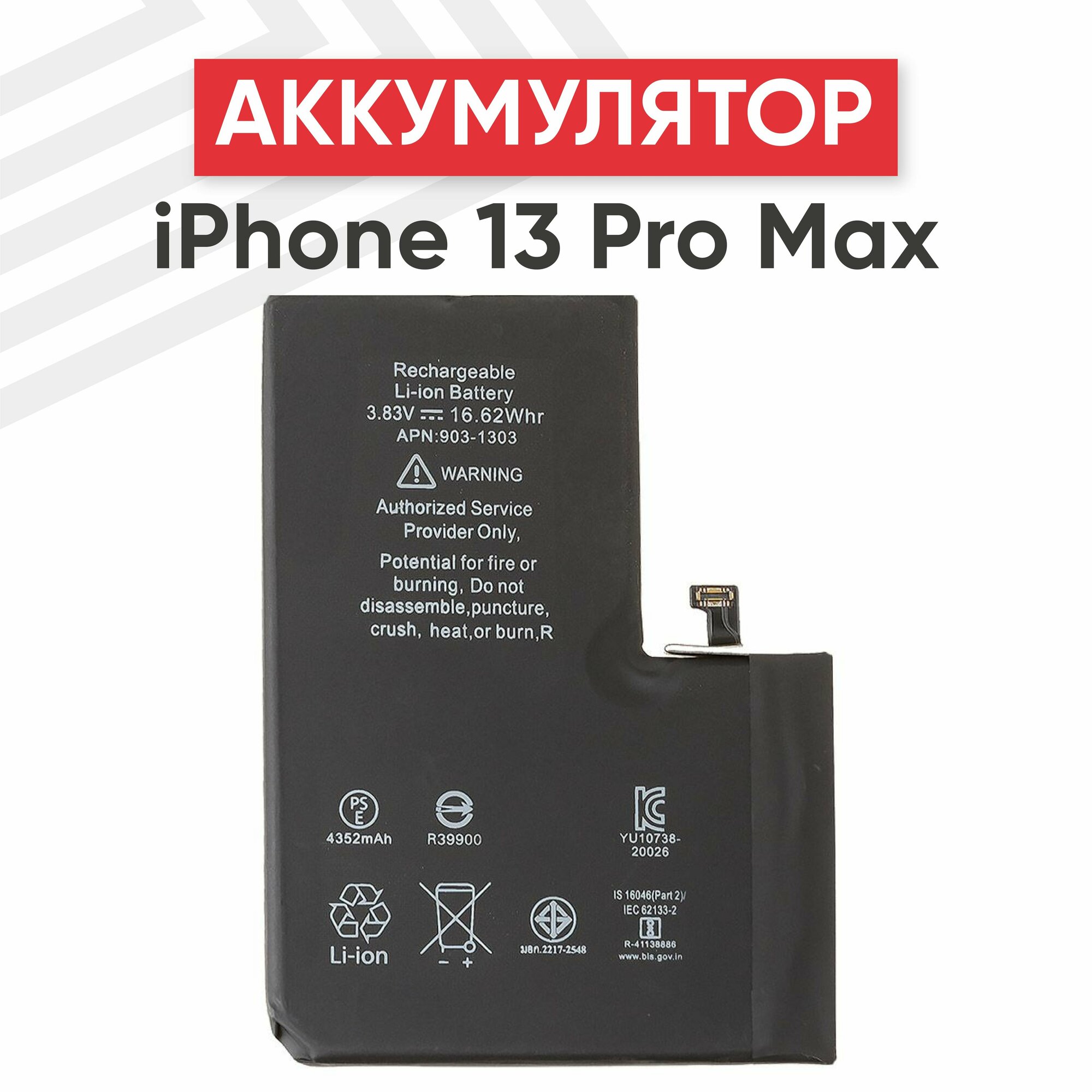 Аккумуляторная батарея для телефона Apple iPhone 13 Pro Max, 3.83В, 4325мАч, Li-ion