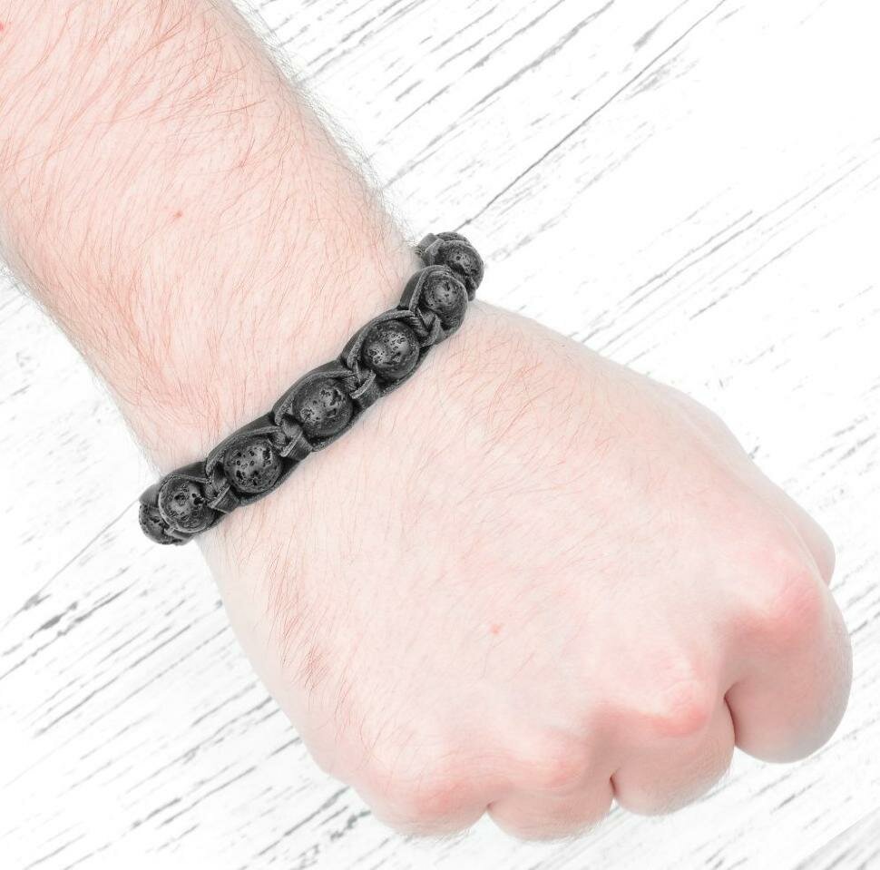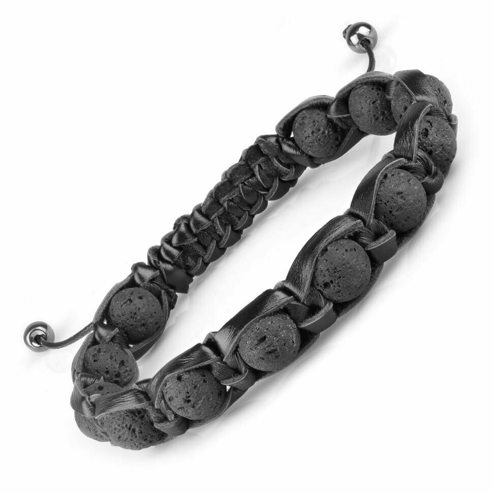Черный мужской браслет Шамбала из лавы (базальта) и кожи Everiot Select LNS-2089 (Размер 21 см) интересное: