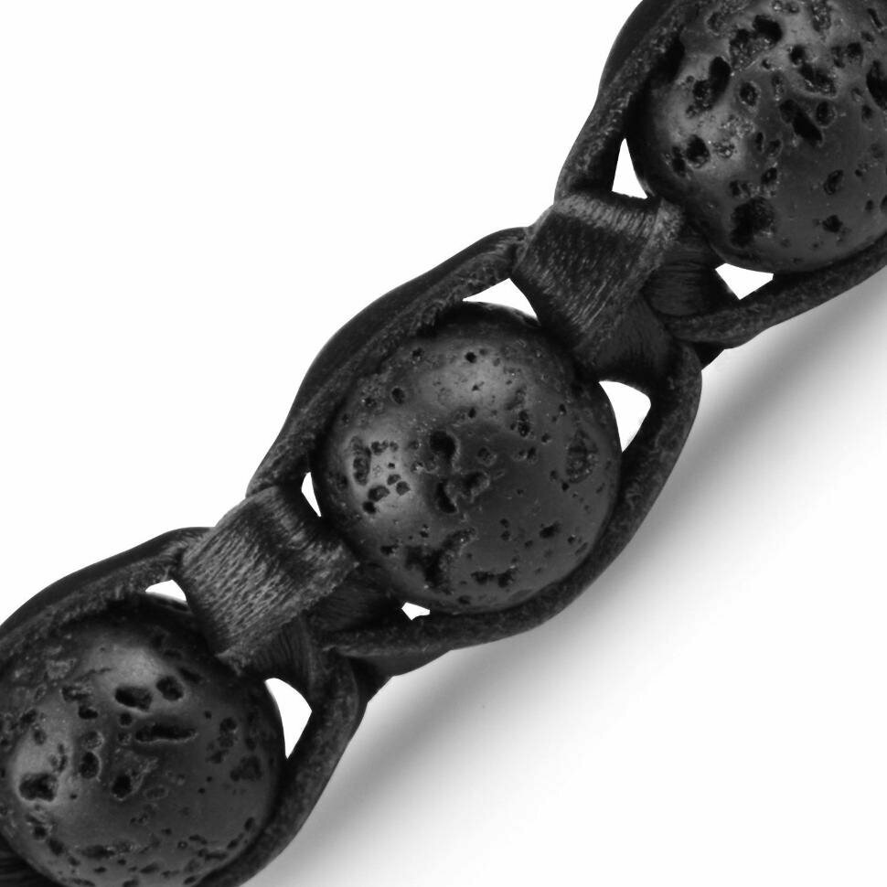 Купить Черный мужской браслет Шамбала из лавы (базальта) и кожи Everiot Select LNS-2089 (Размер 21 см)