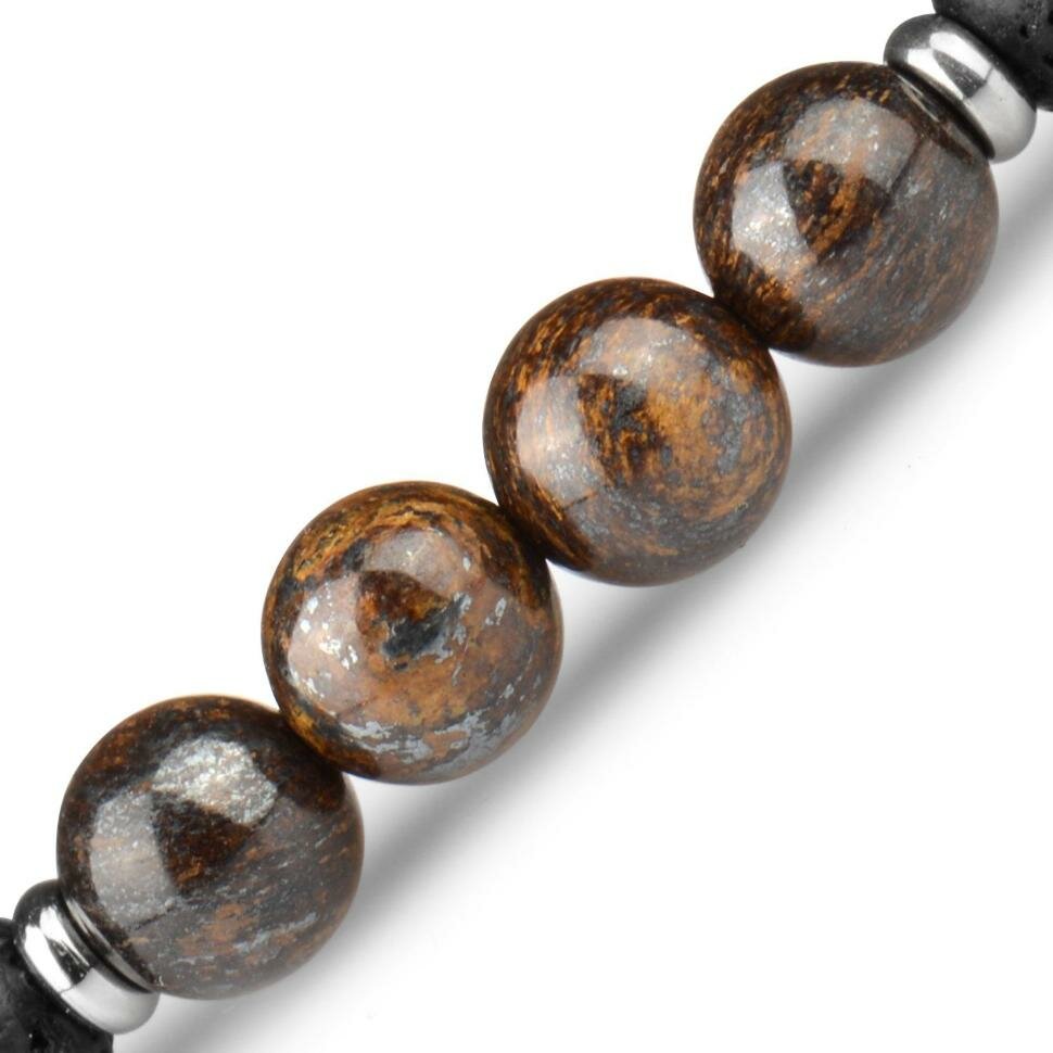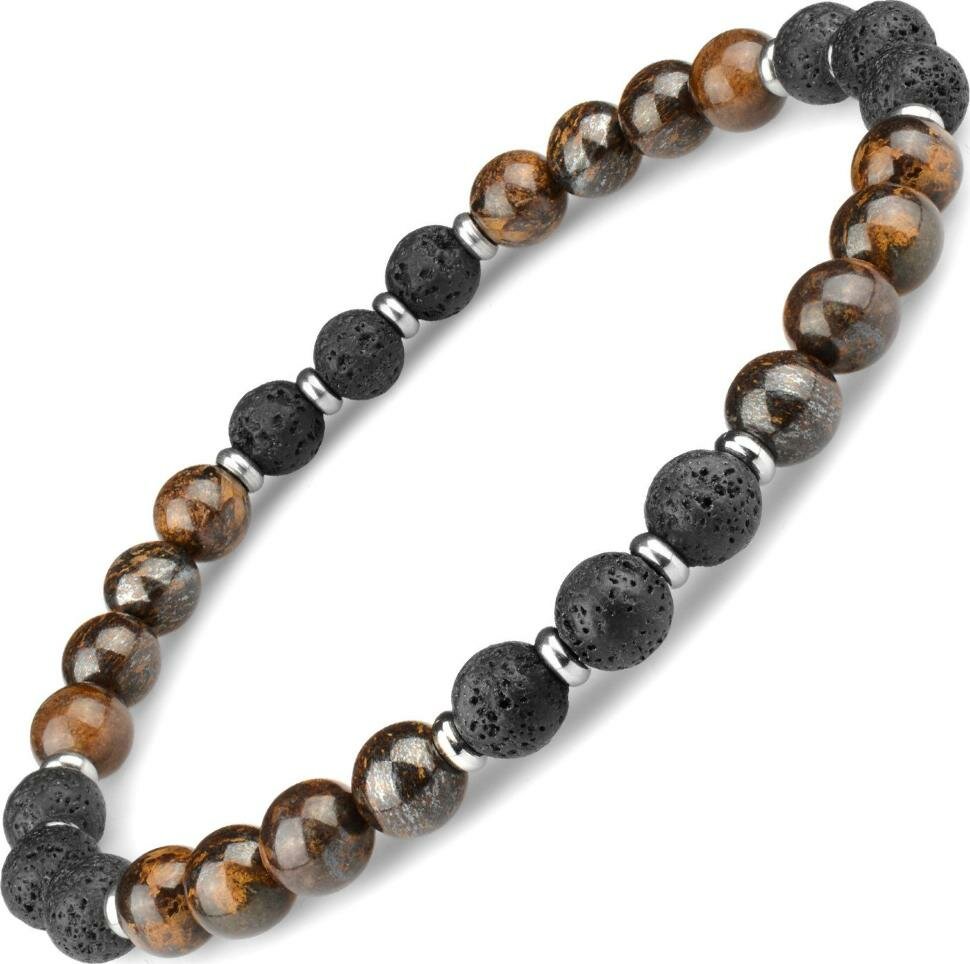 Купить Мужской браслет на резинке Everiot Select LNS-2034 из камней лавы и бронзита (Размер 23 см)