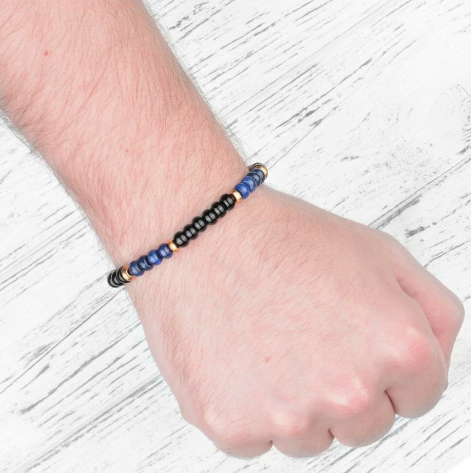 Браслет ручной работы в стиле Шамбала Everiot Select LNS-2018 из натурального лазурита и агата (Размер 22 см)