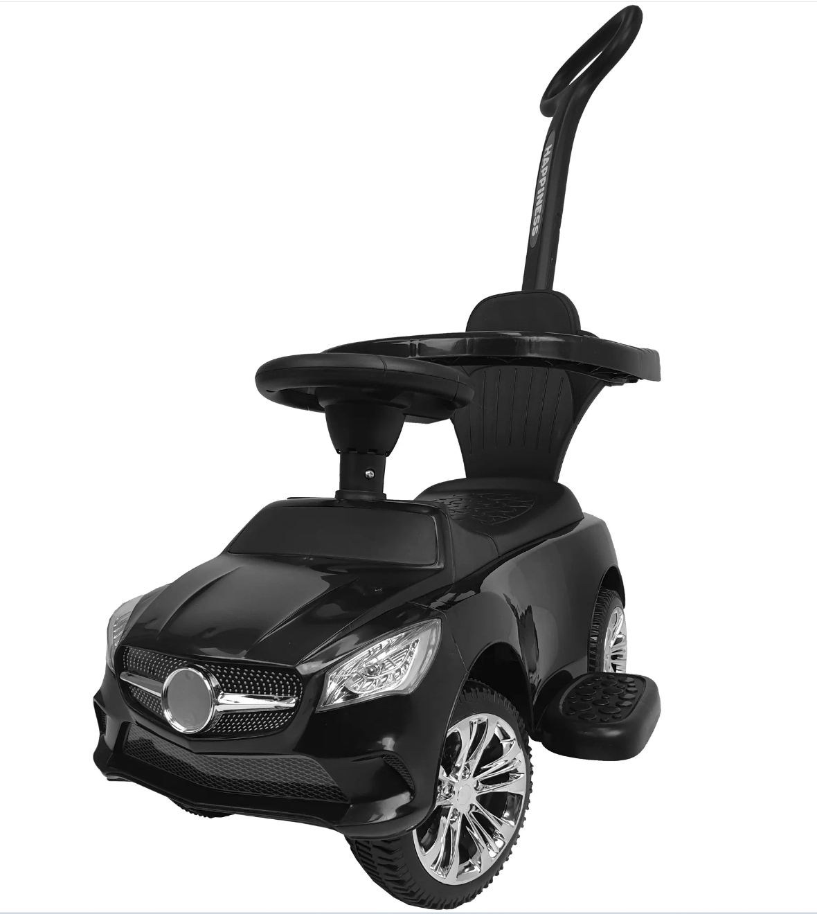 Детский толокар JY-Z06C, машина каталка с родительской ручкой, свет, звук, до 20 кг, 1,5-6 лет, черный
