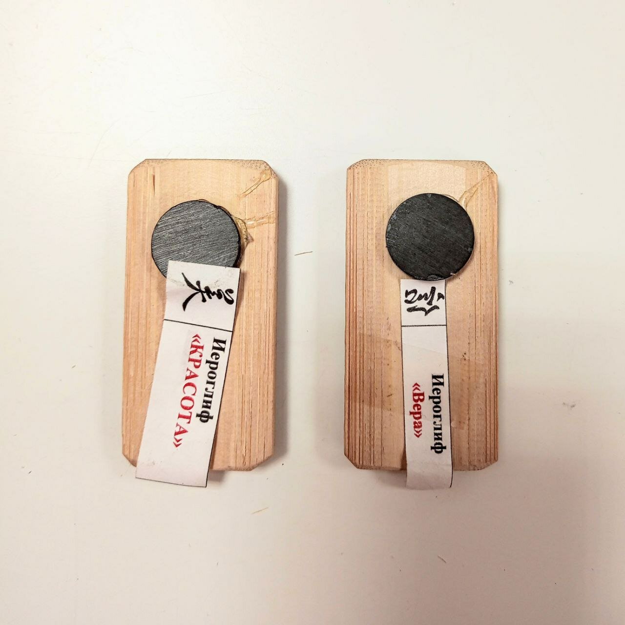 Набор бамбуковых магнитов с иероглифами "Вера" и "Красота" интересное: