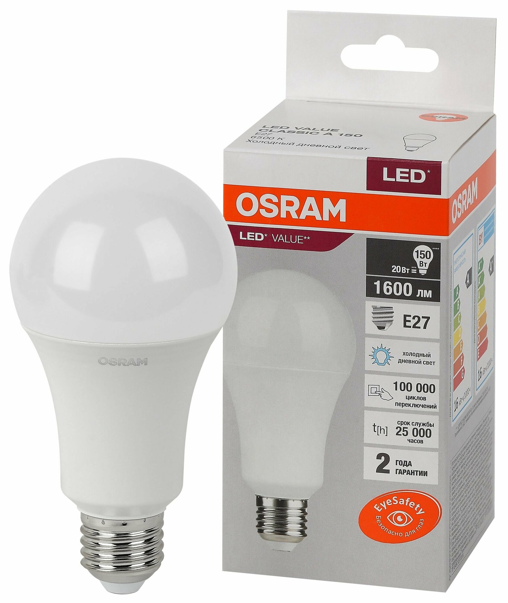 Лампа светодиодная OSRAM LED Value A, 1600лм, 14Вт, 6500К холодный свет, Цоколь E27, матовая, 1 шт интересное:
