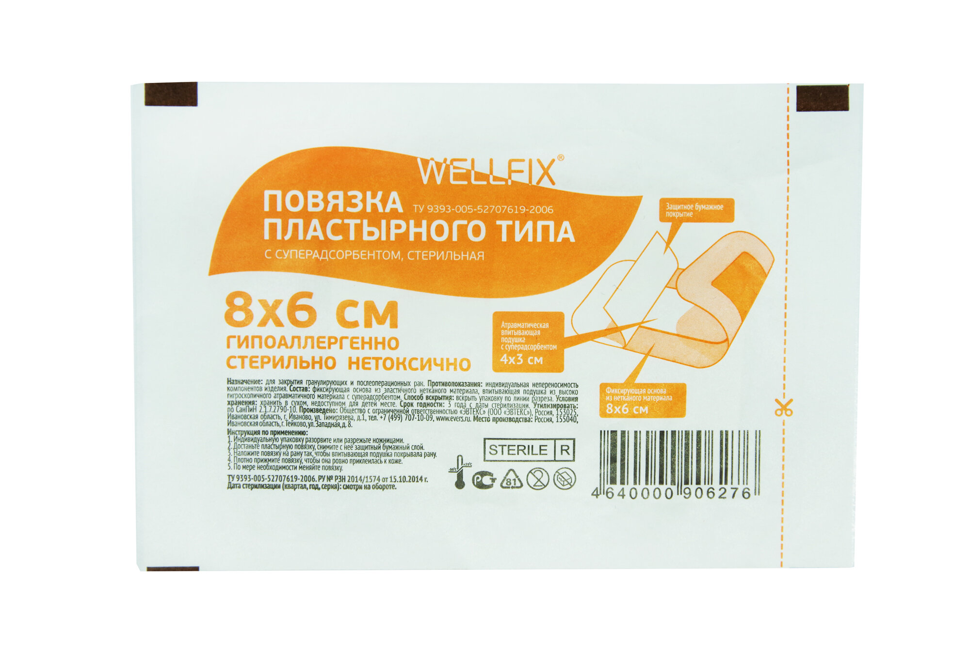 Wellfix / Веллфикс - повязка пластырная, с суперадсорбентом, стерильная, 8x6 см интересное: